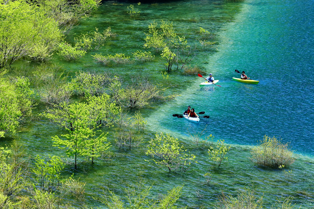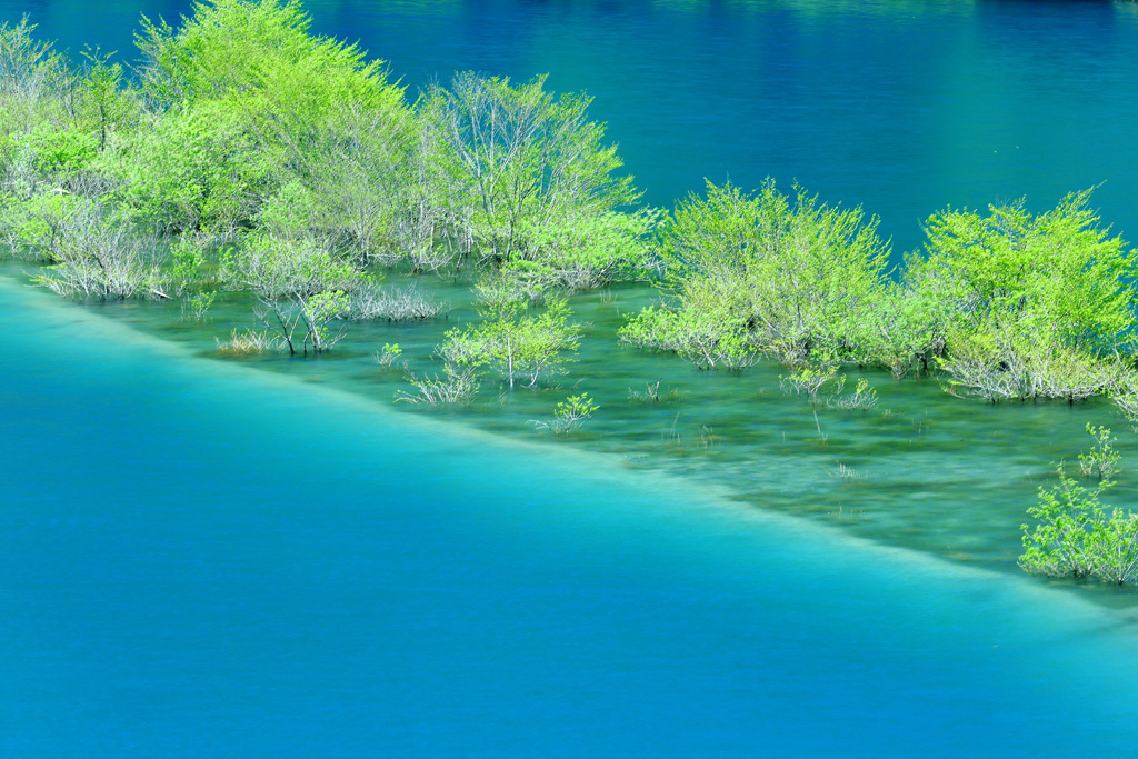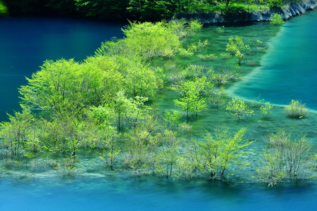 近年、奥四万湖は、ダム本来の役割に加えて環境保全やレクリエーション活動への活用ニーズが高まり、水と緑のオープンスペースとして整備されるなど、地域活性化につながることが期待されている。湖面には、薫風に誘われ、カヌーを漕いで湖面を自由に往来する人々がみえる。